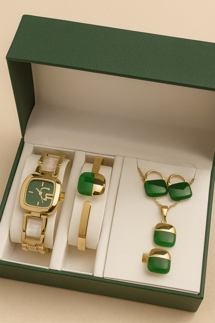 طقم ذهبي مع اخضر (5 قطع)