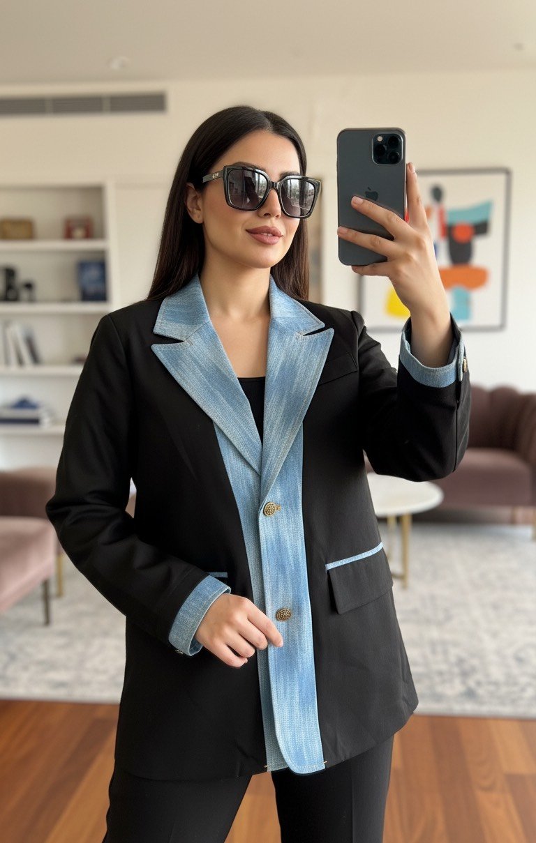 بيج مع جينز اسود مع جينز